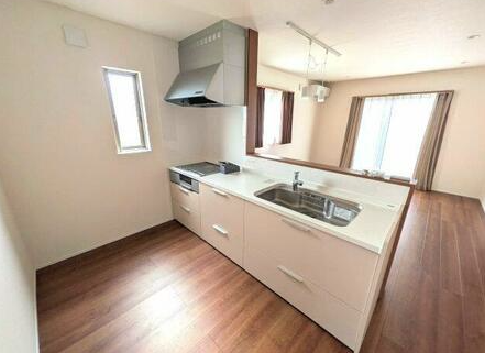 また、オールパナソニックの高性能オール電化住宅で、機能性と省エネ性を両立した安心の住まいです。間接照明付きの室内はデザイン性が高く、落ち着きのある雰囲気を演出します。南側5m公道に接道し、接面約10mのため駐車や出入りもスムーズ。無料駐車場付きで利便性も良好です。